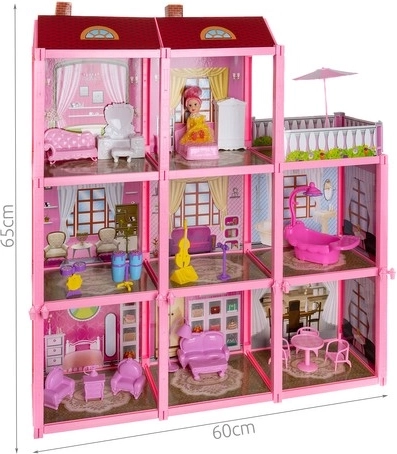 Domek De Jucărie Kruzzel de 65 cm este alegerea perfectă pentru orice copil care adoră să se joace cu păpuși. Acest set include o vilă spațioasă echipată cu mobilier și o păpușă.