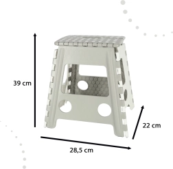 Scăunelul pliabil practic este ajutorul ideal pentru bucătărie, dressing și atelier. Oferă un pas sigur când ajungeți la rafturile și dulapurile superioare, iar datorită suprafeței superioare antiderapante utilizarea este sigură. Construcția din plastic rezistent asigură stabilitate și capacitate de încărcare de 150 kg.