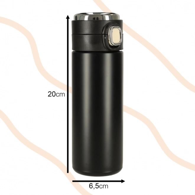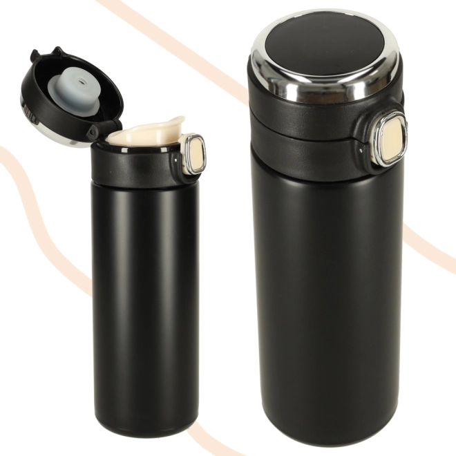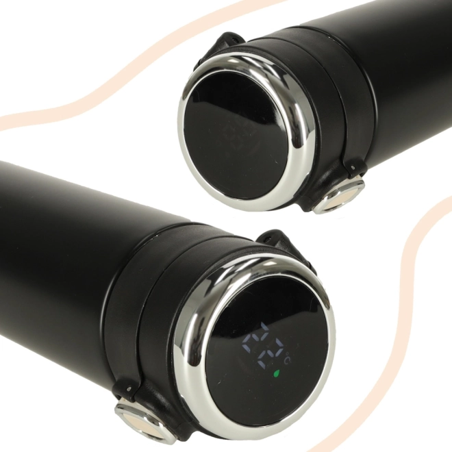 Afișajul LED de pe capac arată temperatura actuală a băuturii din interiorul canei, ceea ce sigur va atrage atenția celor din jur. Designul negru liniștit adaugă un plus de stil și atrage priviri.
