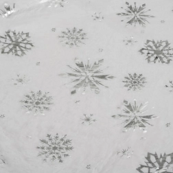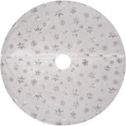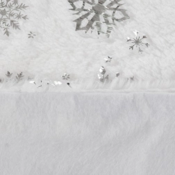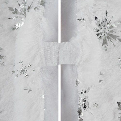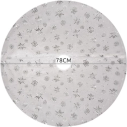 Această fustă este decorată cu stele argintii frumoase și fulgi de nea, care adaugă un aspect magic unic decorului de Crăciun.