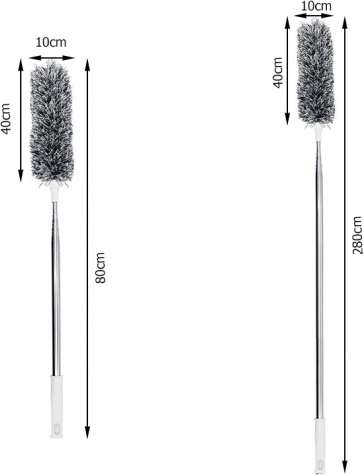 Cu măturile telescopice pentru praf, eliminarea prafului devine o joacă. Datorită designului său telescopic, care se extinde până la 280 cm, veți ajunge cu ușurință la tavanele înalte, lămpile și alte suprafețe greu accesibile. Perii lungi colectează eficient praful, în timp ce designul ușor și practic facilitează manipularea.