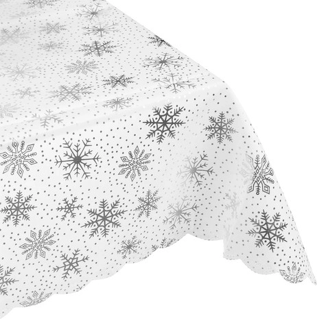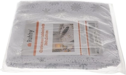 Fața de masă este fabricată din poliester de calitate și are un frumos ton alb-argintiu. Datorită posibilității de a o spăla, această față de masă este ușor de întreținut și potrivită pentru utilizare repetată în timpul sărbătorilor anuale.