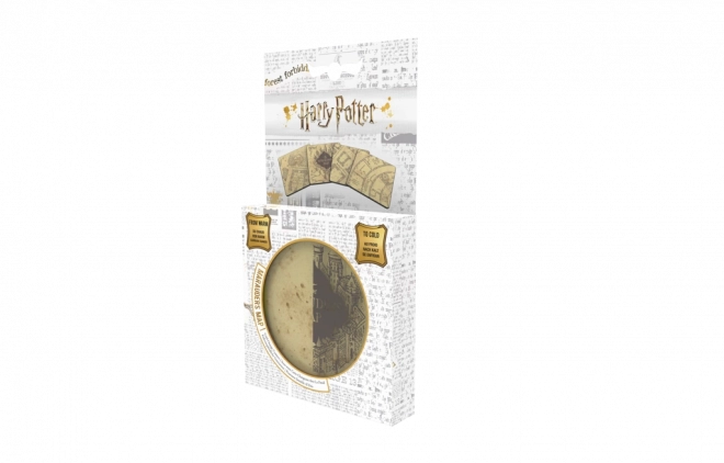 Descoperă magia la fiecare înghițitură cu acest set stilat de suporturi pentru pahare MARAUDER'S MAP. La contactul cu o cană fierbinte, pe suprafața suportului apare magic o hartă, care oferă servirii tale un efect original și jucăuș. Un cadou grozav pentru fani și un accesoriu de design pentru casă.