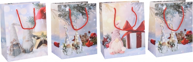 Simplificați ambalarea cadourilor cu această pungă elegantă de Crăciun. Dimensiunea de 26 × 32 × 10 cm este ideală pentru cadouri de dimensiune medie și surprize de sezon. Datorită celor 4 modele diferite, veți potrivi cu ușurință aspectul pungii cu conținutul și stilul persoanei care primește cadoul.