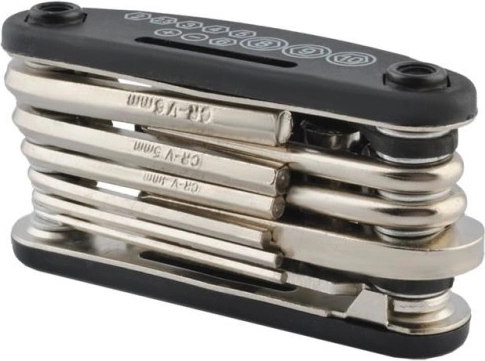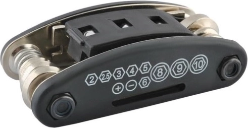 Setul compact de chei pentru bicicletă 16 în 1 este instrumentul esențial al fiecărui ciclist. Întregul set este pliat sub forma unui briceag. Dimensiunile sale reduse îți permit să îl porți mereu cu tine în geanta de pe bicicletă, în rucsac sau în buzunar. Setul conține cele mai necesare unelte pentru reparații rapide și individuale ale bicicletei. Cu acest set poți porni fără griji în călătorii lungi.