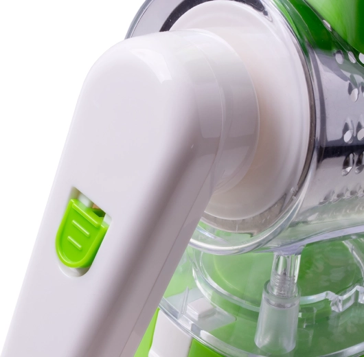 Răzătoare rotativă manuală rapidă și eficientă, care rade ușor și rapid brânză, legume, fructe și nuci. Este echipată cu o deschidere largă, capabilă să radă sau să felieze în câteva secunde cantități mari de alimente, și cu un piston de presare care îți menține degetele în afara razelor. Oferă montare ușoară a lamelor interschimbabile. Dozatorul înclinat reduce eventualele înfundări. Are o bază cu ventuză, care fixează în siguranță dozatorul pe o suprafață curată, uscată și neporoasă.