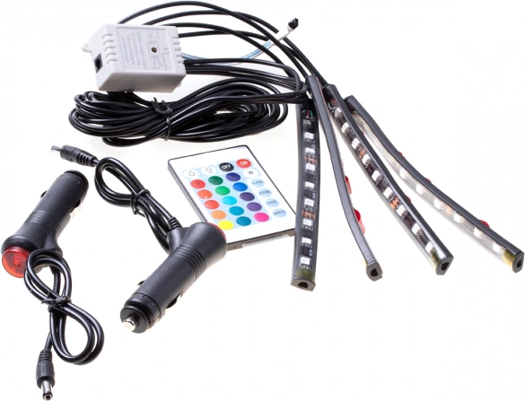 Benzile LED permit crearea unei iluminări originale a interiorului oricărui automobil. Datorită iluminării LED puteți crea un interior original în mașina dvs. Benzile vă ajută să realizați rapid și ușor o schimbare simplă, dar importantă, în vehiculul dvs. Benzile pot fi lipite deasupra pragurilor, sub scaune, sub uși, în cockpit, în portbagaj etc. Benzile LED se fixează cu bandă adezivă dublu-adezivă 3M, astfel încât instalarea este foarte ușoară. Benzile sunt impermeabile, astfel că nu trebuie să vă faceți griji privind umiditatea. Prin reglarea intensității luminii puteți decide singuri ce parte a interiorului doriți să fie iluminată. Alimentare direct din bricheta auto - 12 V. Se poate opri rapid și ușor datorită butonului special iluminat ON/OFF de pe ștecherul de 12V al brichetei.