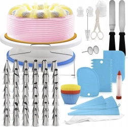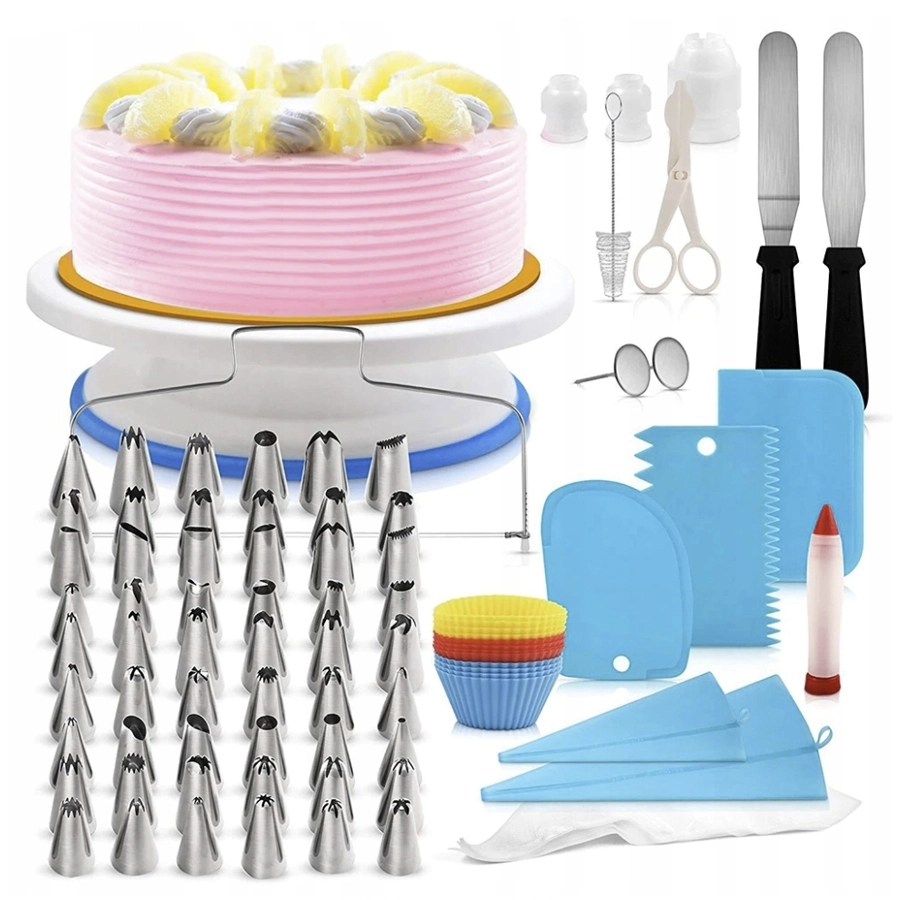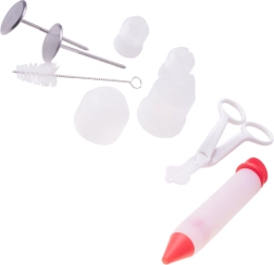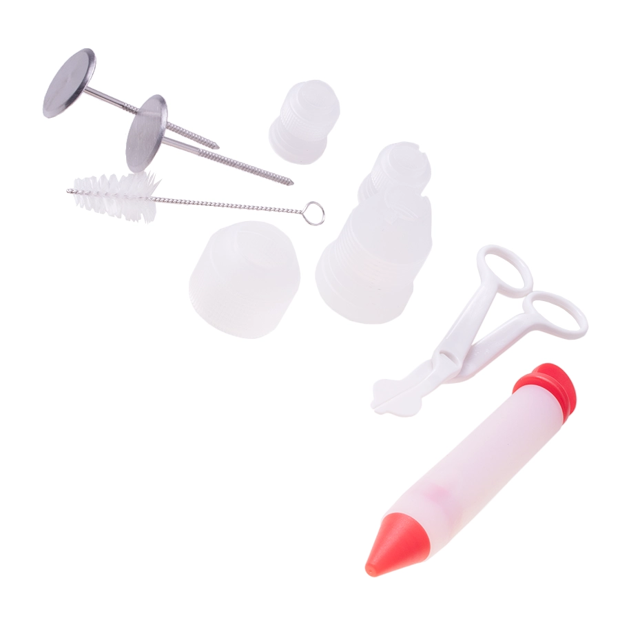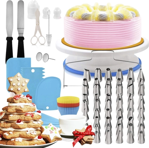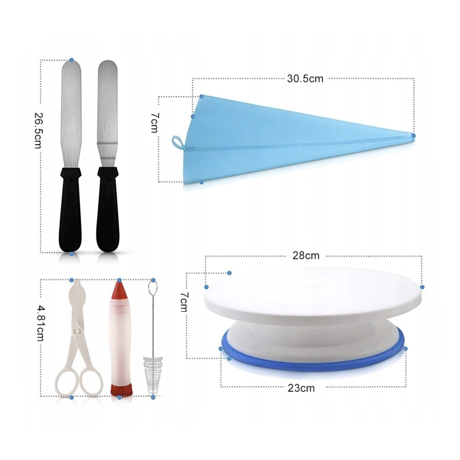 Set foarte cuprinzător și bine conceput pentru decorarea prăjiturilor, biscuiților, cupcake-urilor, brioșelor etc. Set profesional care este util atât pentru începătorii în cofetărie la pregătirea acasă a torturilor și deserturilor pentru zile de naștere, onomastici sau sărbători, cât și pentru bucătarii experimentați. Fabricat din plastic de înaltă calitate, silicon și oțel inoxidabil.
