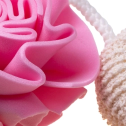 Buretele de baie roz creează spumă abundentă, curăță delicat și ajută la netezirea pielii fără iritații – ideal pentru dușul zilnic.