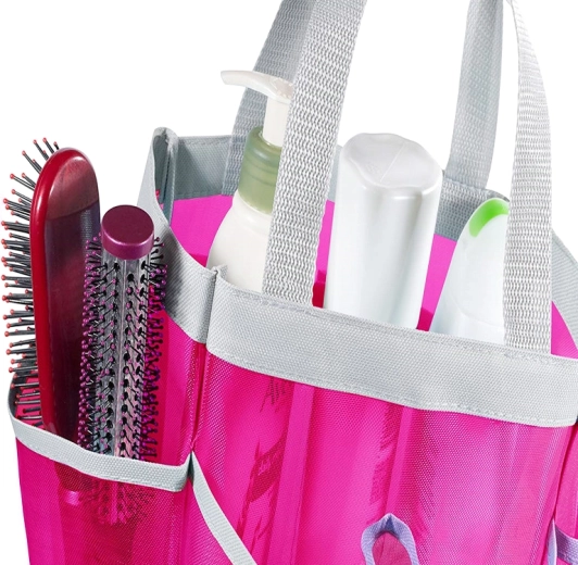 Geanta de plajă din plasă, roz, spațioasă și funcțională, este ideală pentru plajă, locul de joacă sau plimbare. Încap cu ușurință saltelele groase de plajă, prosoapele și jucăriile. Datorită plasei, obiectele ude pot respira liber și se usucă mai repede. Buzunarele practice permit depozitarea lucrurilor necesare, evitând astfel căutarea îndelungată.