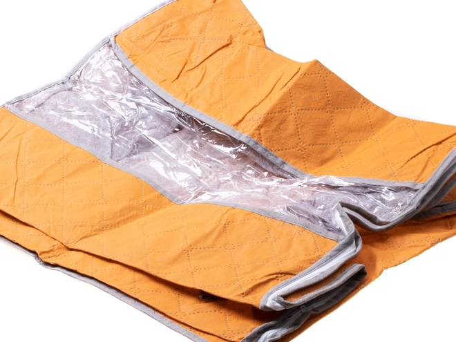 Husa portocalie practică și compactă pentru cutia de depozitare este soluția ideală pentru păstrarea hainelor de sezon, păturilor, pernelor și lenjeriei de pat. Această husă oferă protecție împotriva umezelii, prafului, moliilor și murdăriei și, în același timp, permite depozitarea comodă în dulap sau sub pat.