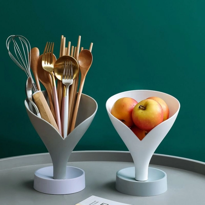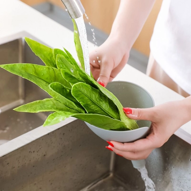 Scurgător cu design pentru legume, fructe și felii tăiate. Îl puteți plasa oriunde pe blatul de bucătărie, ocupă foarte puțin spațiu. Pâlnia practică de scurgere evacuează apa în recipient. Finisajul elegant se va potrivi cu decorul oricărei bucătării. Poate fi folosit pentru prosoape de bucătărie și bureți.