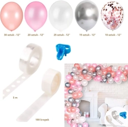 Setul de baloane include o bandă cu orificii pentru realizarea ghirlandei.