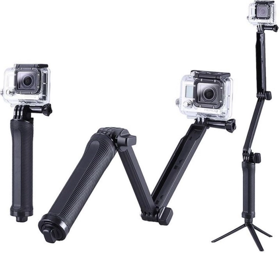 Trepiedul modern pentru camere GoPro este un produs care ne permite să surprindem cele mai interesante și importante momente din viața noastră. Dedicat vloggerilor, youtuberilor, persoanelor care publică videoclipuri, celor care fac live streaming, pasionaților de sporturi extreme și tuturor celor care doresc să obțină videoclipuri și fotografii de calitate excepțională. Trepiedul nostru este ușor, compact și totodată extrem de stabil. Monopodul pentru camera video GoPro poate fi folosit în trei moduri: ca trepied pentru cameră, ca mâner și ca braț pentru selfie-uri. Mânerul are o lungime de la 19 cm la 51 cm, iar în stare pliată ocupă foarte puțin spațiu, astfel încât încape în rucsac.