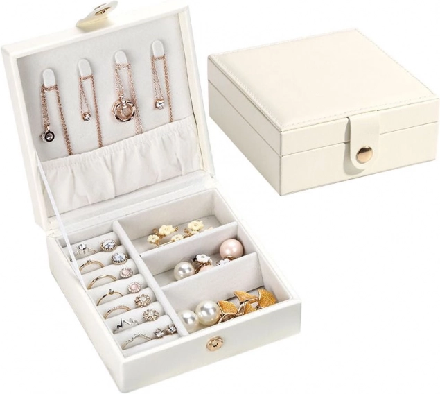 Printre obiectele personale ale fiecărei femei se află bijuteriile. Cutia de bijuterii este indispensabilă și un produs fiabil pentru depozitarea valorilor dumneavoastră. Compartimentele și sertarele separate oferă spațiul ideal pentru cercei, brățări, ceasuri, lanțuri, ochelari și alte obiecte de valoare. Caseta de bijuterii elimină problema lanțurilor încâlcite, a frecării și zgârierii. Pe capac există 3 cârlige pentru agățarea lanțurilor. Pe cealaltă parte, dedesubt, găsiți spațiu pentru cercei, inele, brățări, ceasuri și alte mărunțișuri. Căptușeala moale protejează bijuteriile prețioase împotriva zgârieturilor.