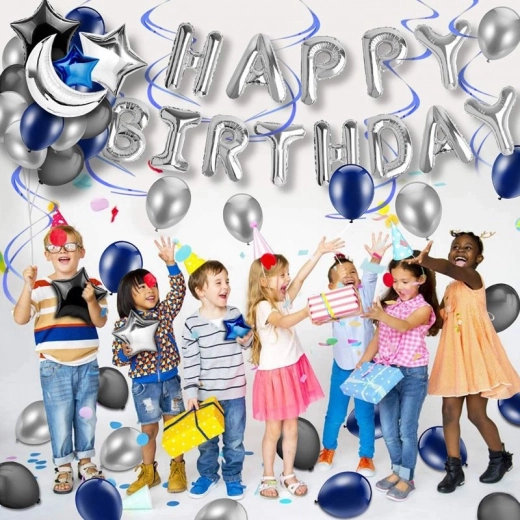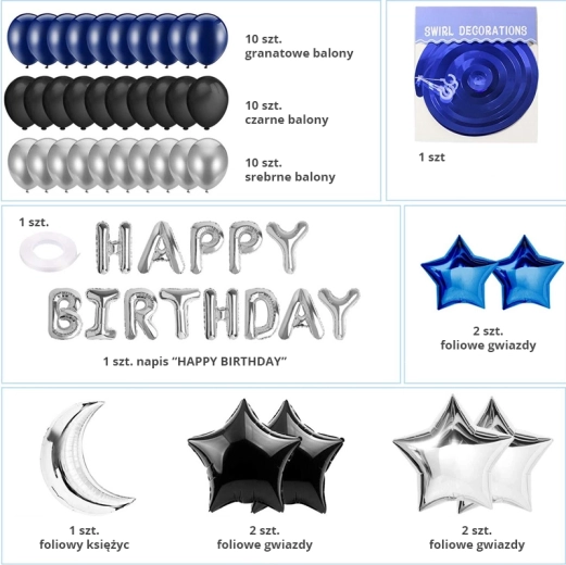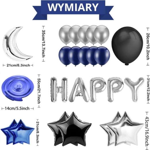 Set de baloane pentru aniversare - albastru închis și negru