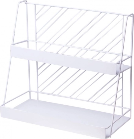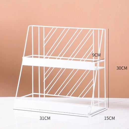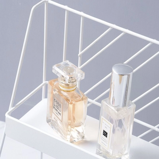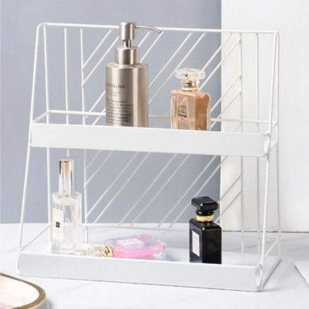 Organizează-ți spațiul din baie sau dormitor cu acest raft metalic cu două etaje, ideal pentru ordine și estetică modernă în stil glam. Este perfect pentru a economisi spațiu și pentru a păstra cosmeticile și accesoriile în ordine.