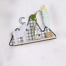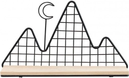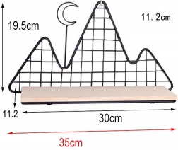Această etajeră decorativă, în elegantul negru, îmbină funcționalitatea cu designul. Structura ușoară din sârmă, cu motiv montan, conferă lejeritate, în timp ce polița solidă din lemn susține în siguranță decorațiuni mici, lumânări, plante, rame foto sau cărți preferate.