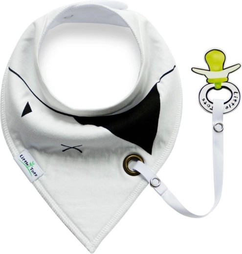 O bentiță/esarfa drăguță pentru copii, cu un suport delicat pentru suzetă. Accesoriul pentru gât este ideal ca bavetă pentru perioada erupției dentare la bebeluși. Suportul atașat poate fi înlocuit cu propriul suport. Sistemul de prindere confortabil, cu capse, nu apasă copilul și permite, de asemenea, reglarea circumferinței.