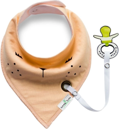 O eșarfă drăguță pentru copii cu un mic breloc pentru suzetă. Accesoriul pentru gât este ideal ca bavetă pentru perioada erupției dinților la copilul mic. Brelocul inclus poate fi înlocuit cu unul propriu. Închiderea confortabilă tip bretea cu capse nu jenează copilul și permite, de asemenea, reglarea circumferinței.