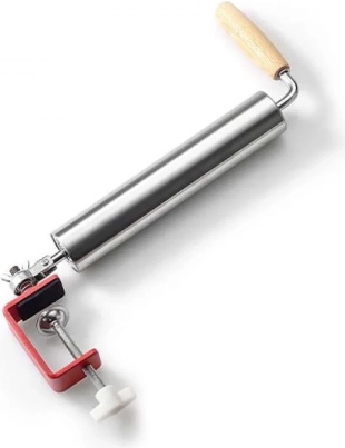 Sucitorul cu o mână reprezintă o soluție inovatoare pentru toți bucătarii care doresc să-și îmbunătățească abilitățile în pregătirea produselor de patiserie. Cu posibilitatea de a fi fixat pe marginea mesei, sucitorul rămâne stabil în timpul lucrului, asigurând întinderea precisă și uniformă a aluatului. Produsul este fabricat dintr-un material inoxidabil durabil, care este sigur la contactul cu alimentele.