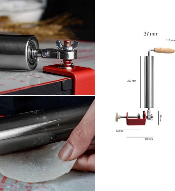 Designul compact cu posibilitate de fixare pe marginea mesei asigură că sucitorul rămâne pe loc și permite întinderea precisă și uniformă a aluatului.