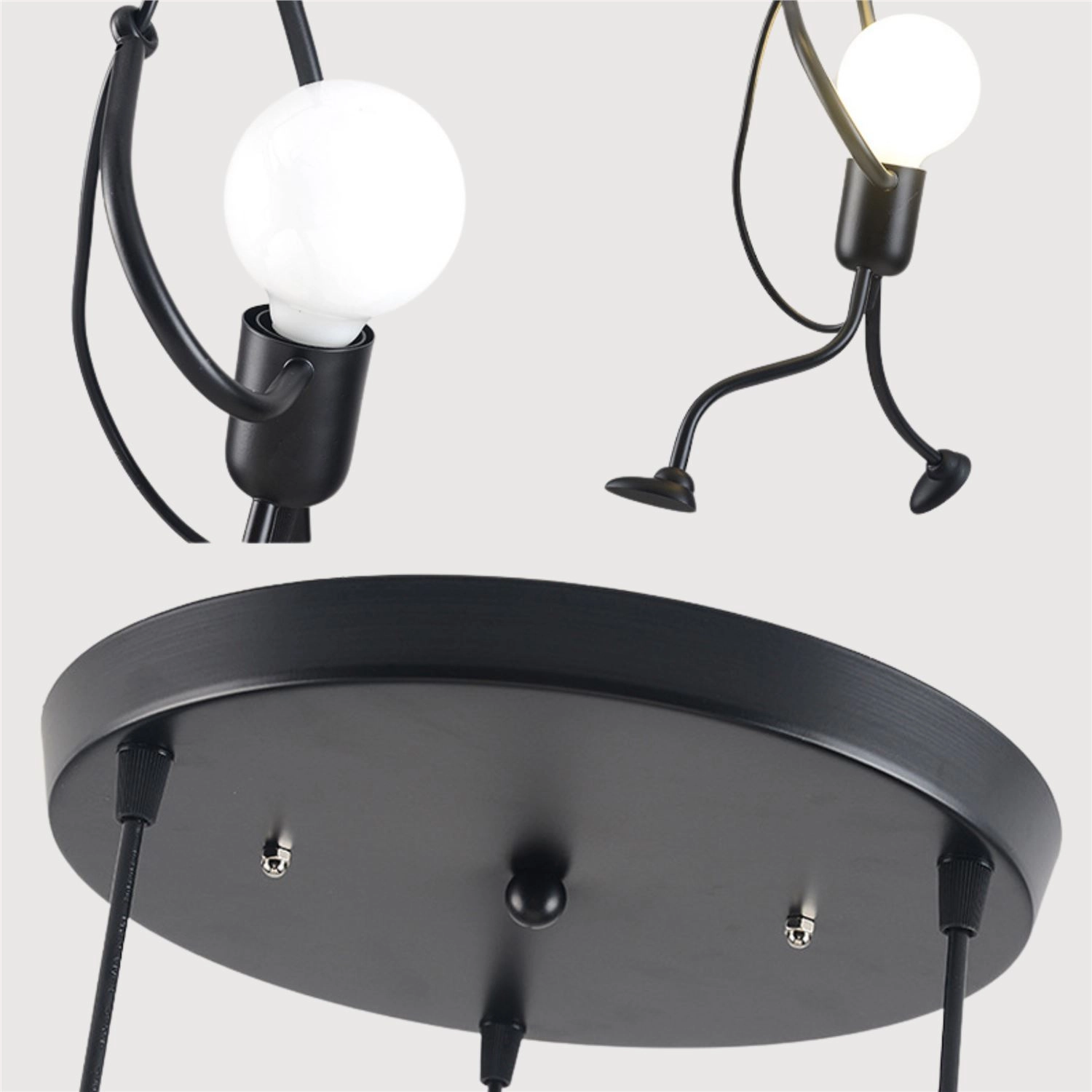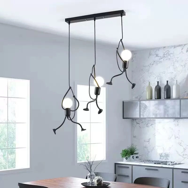 Această lampă se remarcă prin designul său unic, care arată ca niște figuri cățărătoare, adăugând spațiului creativitate și eleganță.