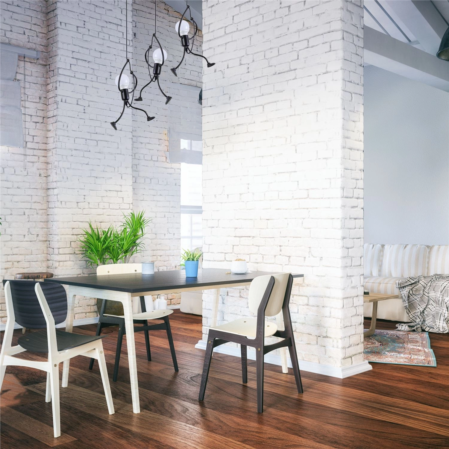 Această lampă de tavan reprezintă vârful stilului Loft, ideală pentru interioare moderne și minimaliste. Datorită designului său unic și utilizării universale, este potrivită pentru iluminarea camerelor de zi, bucătării, colțuri de servit masa, holuri, restaurante și baruri. Este compatibilă cu filete obișnuite E27 și oferă trei surse de lumină care amintesc de figuri, conferindu-i un aspect creativ și impresionant.