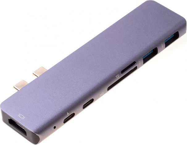 Vă prezentăm adaptorul de top 7‑în‑1 HUB USB‑C HDMI 4K SD, conceput special pentru utilizatorii de MacBook Pro și MacBook Air. Acest adaptor elegant și compact, în culoare gri, îmbină funcționalitatea cu stilul și este ideal pentru profesioniștii care caută o modalitate fiabilă de conectare a diferitelor dispozitive.
