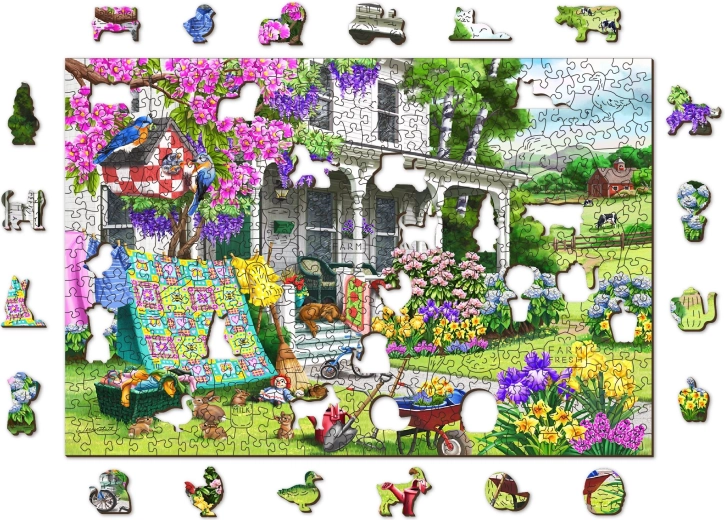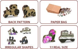 Puzzle-ul oferă posibilitatea de a fi asamblat nu doar după imagine, ci și după forma de pe partea din spate cu un model repetitiv.