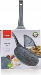 Tigaia BANQUET Granite Gray Smile va încânta atât copiii, cât și adulții. Cele șapte adâncituri rotunde (8 cm) asigură clătite groase, clătite subțiri sau ouă ochiuri coapte uniform, datorită corpului masiv de 4 mm cu excelentă acumulare a căldurii. Suprafața antiaderență Dyflon în două straturi minimizează lipirea și facilitează gătitul cu o cantitate mai mică de ulei.