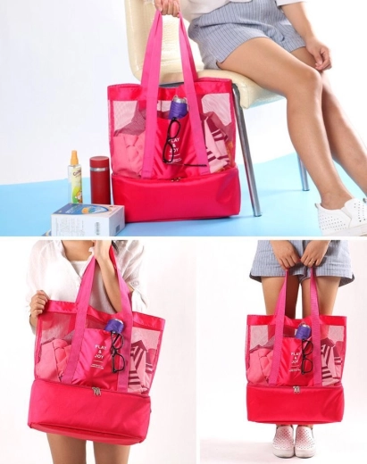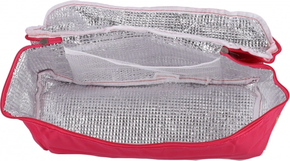Această geantă de picnic roz este însoțitorul ideal pentru excursii de vară la munte, la mare sau la picnic. Vă permite să depozitați comod caserola pentru prânz, termosul, recipientele din plastic pentru alimente și diverse băuturi. Este fabricată dintr-un material ușor, ceea ce permite plierea ei la o dimensiune mică.