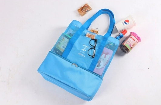 Geantă de picnic, care se poate dovedi ideală pentru excursii de vară la munte, la mare și pentru picnicuri. Geanta este pliabilă și funcțională, cu siguranță încap în ea prosoape de plajă, haine, jucării pentru copii. În partea de jos geanta are un compartiment termic în care puteți pune o cutie pentru gustare, un termos, recipiente din plastic pentru alimente și toate tipurile de băuturi, păstrându-le calitatea și temperatura ideale. Geanta este fabricată din material ușor, care permite plierea ei la dimensiuni reduse