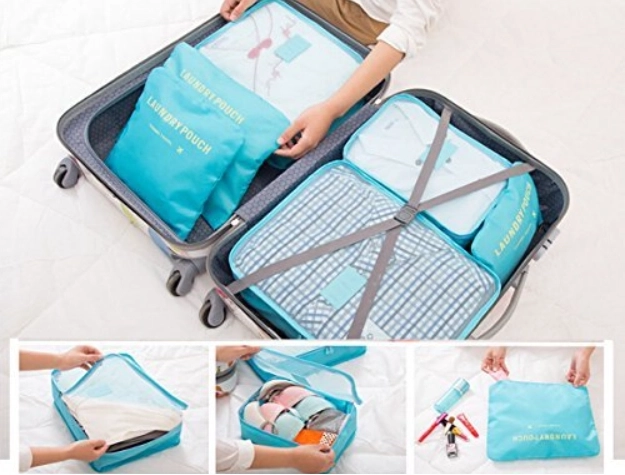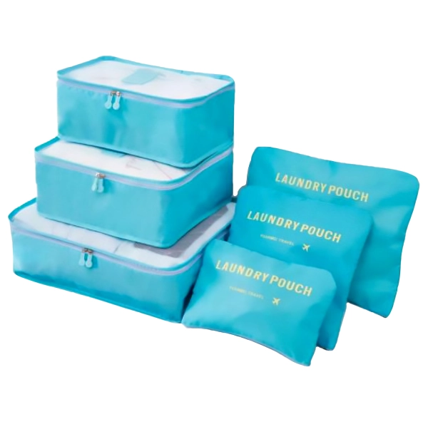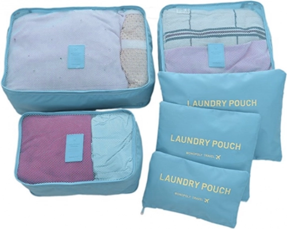 Setul practic de organizatoare de călătorie, în elegantul albastru deschis, te ajută să ai toate lucrurile aranjate clar atât în valiză, cât și acasă, în dulap. Datorită dimensiunilor diferite, separi ușor hainele, lenjeria, încălțămintea și cosmeticele. Unele genți au clapă din plasă respirabilă pentru o ventilație mai bună și o vizibilitate rapidă a conținutului. Întregul set este ușor, compact și cu închidere cu fermoar pentru organizare rapidă, depozitare igienică și împachetare și despachetare ușoară.