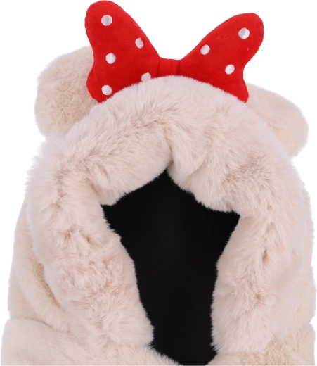 Căciulă plușată pentru copii cu fular pentru vârstele 1–8 ani – bej cu fundă roșie