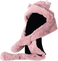 Căciula 3‑în‑1 pentru copii, adorabilă și practică, combină glugă, fular și mănuși într-un singur produs. Din material de pluș moale, îi menține pe cei mici la căldură în plimbări de iarnă, la schi și la patinaj. Ideală pentru fete cu vârsta între 2–12 ani.