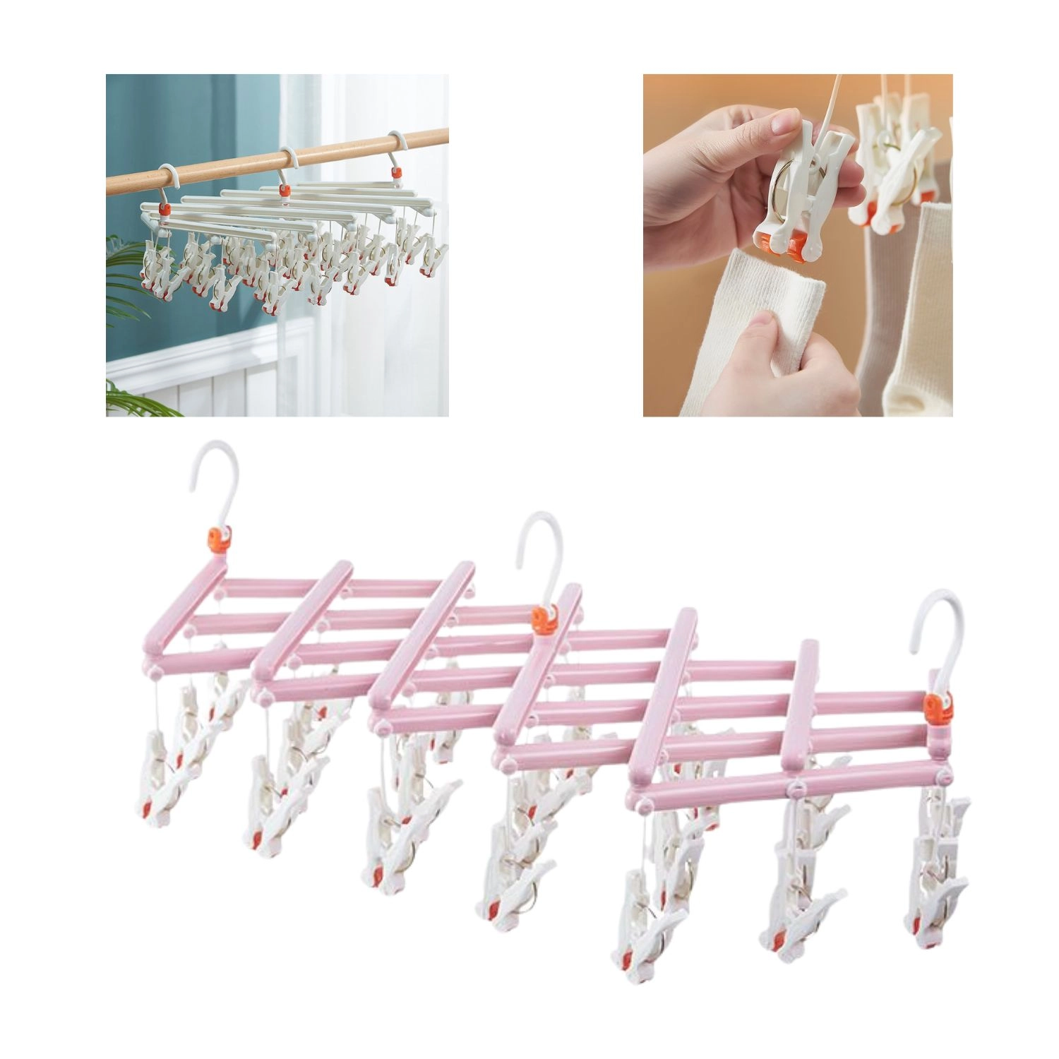 Fără uscarea haotică a rufelor mici. Acest cuier pliabil cu 29 de clipsuri rezistente permite uscarea simultană a mai multor articole în spațiu minim. Cârligul rotativ facilitează agățarea pe bară, uscător, balustrada balconului sau în baie.