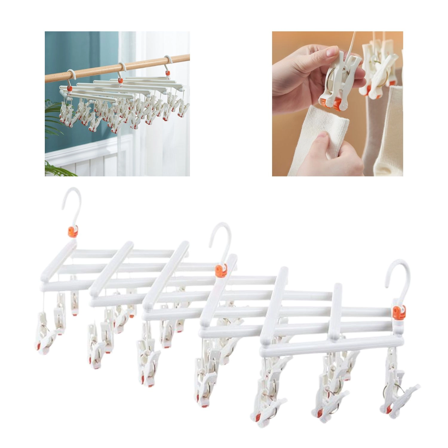Uscătorul pliabil practic cu 29 de cleme este ideal pentru uscarea șosetelor, lenjeriei intime și a pieselor mici, atât în interior, cât și în exterior. Datorită cârligului rotativ, dimensiunilor compacte și plasticului rezistent, economisește spațiu, facilitează organizarea și asigură prindere sigură a rufelor fără alunecare.