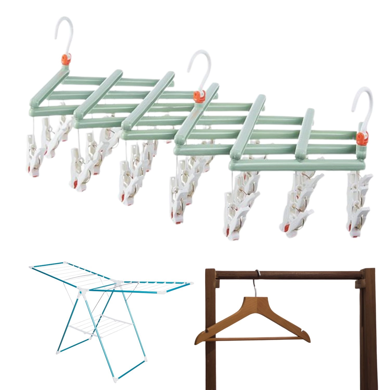 Căutați o soluție inteligentă pentru uscarea articolelor mici? Acest umeraș pliabil cu 29 de clipsuri oferă capacitate mare într-un spațiu minim. Cârligul rotativ cu blocare permite agățarea pe bară, sfoară sau uscător, în timp ce clipsurile antiderapante mențin rufele în siguranță la locul lor.