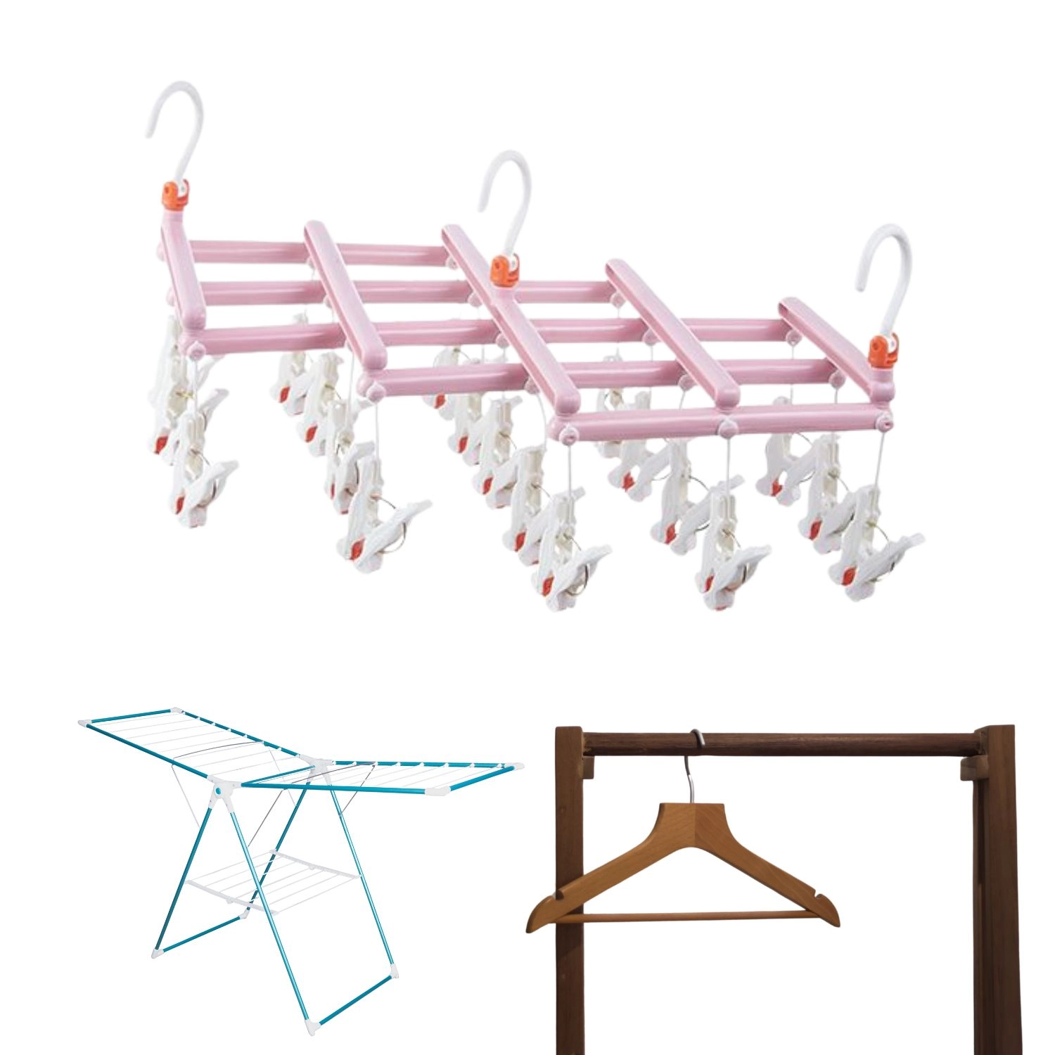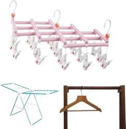 Căutați o soluție inteligentă pentru uscarea rufelor mici? Acest umeraș pliabil cu 19 cleme oferă uscare eficientă pentru șosete, lenjerie intimă și haine pentru copii, fie pe balcon, în baie, pe uscător sau în călătorii. Datorită cârligului rotativ cu blocare, îl puteți agăța aproape oriunde.