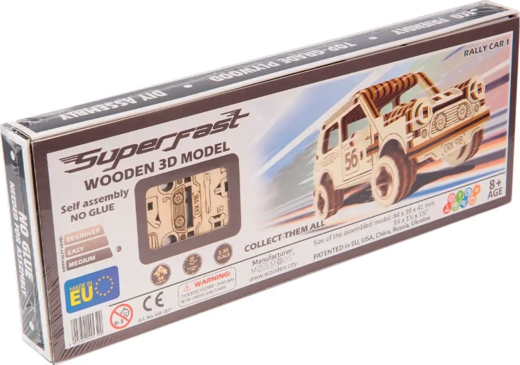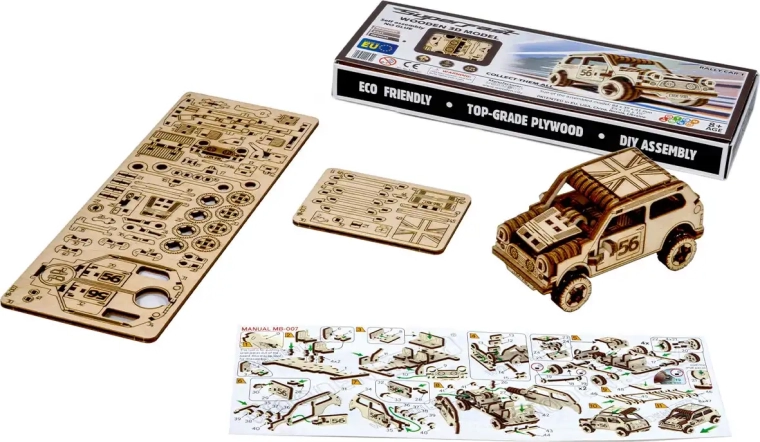 Setul conține 98 de piese și poate fi asamblat în aproximativ 40 de minute. Dificultatea este ușoară, astfel încât modelul este un început excelent în lumea machetelor din lemn și un proiect plăcut pentru o seară în familie. Dimensiunile compacte (84 × 39 × 41 mm) permit amplasarea aproape oriunde.