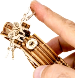Motocicleta Café Racer de la WOODEN CITY este un model din lemn detaliat, la scara 1:16, care va învia biroul sau vitrina ta. Datorită motorului cu bandă elastică și mecanismului de recul, modelul se deplasează înainte și înapoi, parcurge aproximativ 1 metru și îți dezvăluie mecanica reală a angrenajelor.