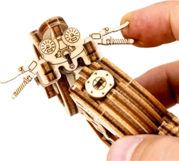 Asamblarea este intuitivă și curată – piesele din placaj de mesteacăn de înaltă calitate se îmbină perfect, totul fiind însoțit de un ghid ilustrat. Roțile cauciucate pentru aderență mai bună, imitațiile de faruri și direcția ușor de controlat accentuează realismul. După asamblare, transformă ambalajul într-un suport practic.