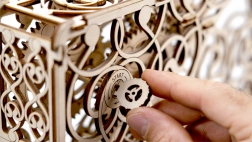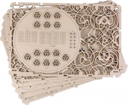 Vă prezentăm un tablou mecanic unic de la WOODEN CITY, care încântă prin complexitate și funcționalitate. Acest puzzle 3D din lemn îmbină frumusețea, știința și arta într-un singur obiect. După asamblare, datorită unei chei speciale, prinde viață și afișează mișcarea roților dințate, care se mișcă armonios ca într-un dans, după calcule matematice.
