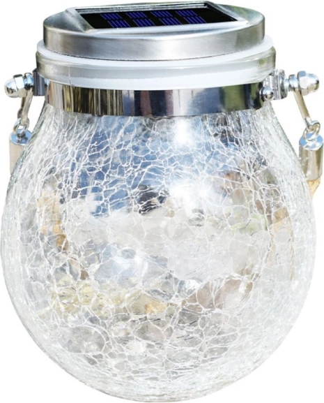 Lampa din sticlă se potrivește perfect lângă gard sau pe balcon. Lampa solară se încarcă cu ajutorul panoului solar. Datorită montajului rapid și ușor, poate fi instalată chiar și în locuri neiluminate. Lampa are un senzor crepuscular integrat care se aprinde noaptea și se încarcă pe timpul zilei.