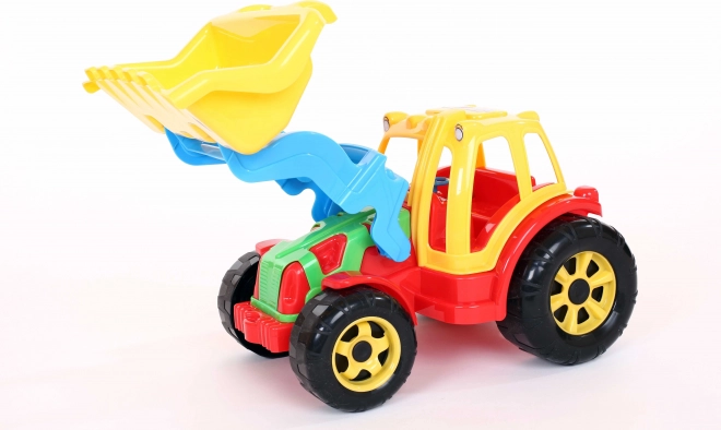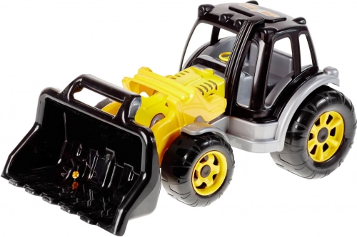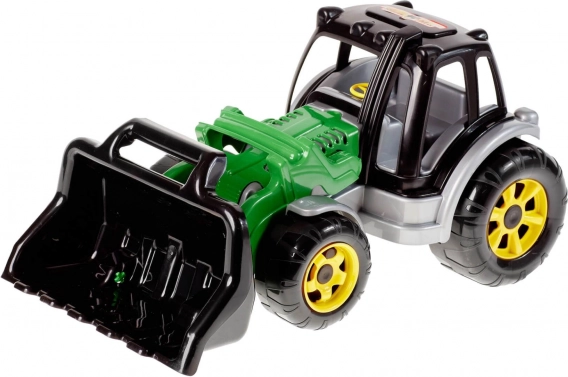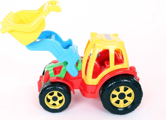 Tractorul cu încărcător oferă copiilor oportunitatea de a-și realiza visele de constructor datorită marelui încărcător frontal cu mâner, ideal pentru a încărca nisip sau alte particule mici. Jucăria este completată de un volan și lumini plasate pe partea superioară a cabinei șoferului, contribuind la o experiență realistă.