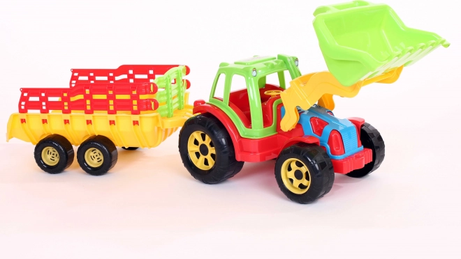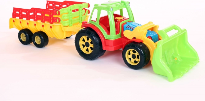 Acest tractor cu remorcă și încărcător este o necesitate pentru orice mic fermier. Setul este fabricat din materiale originale și coloranți care nu conțin compuși din metale grele, astfel îndeplinește toate condițiile de siguranță.