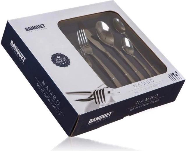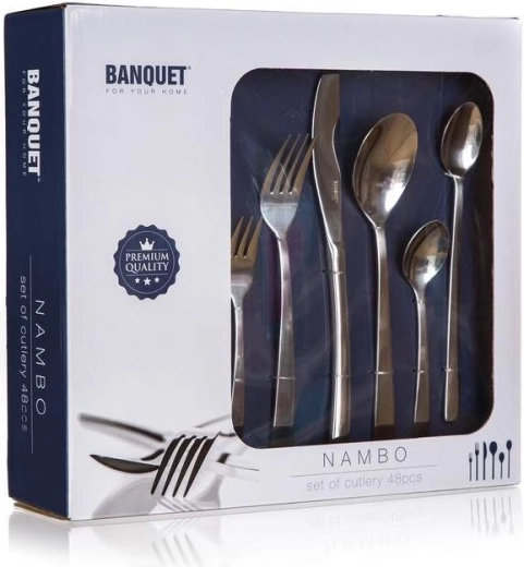 Setul de tacâmuri BANQUET NAMBO, în număr de 48 de piese, este alegerea ideală pentru mesele în familie și pentru ocazii. Forma echilibrată și finisajul lucios din oțel inoxidabil 18/0 oferă mesei dvs. un aspect modern și curat.