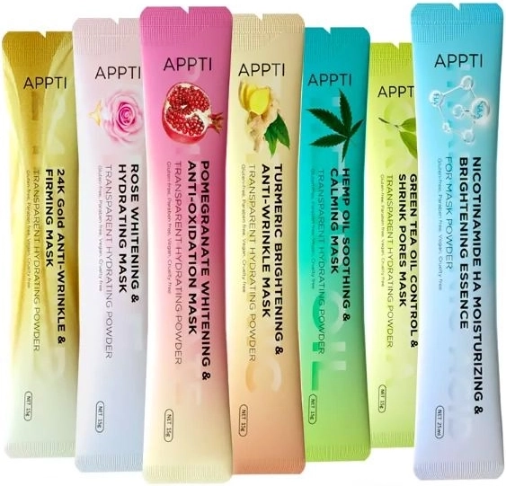Mască hrănitoare în pliculețe APPTI 24K GOLD ANTI-WRINKLE&FIRMING MASK TRANSPARENT HYDRATING MASK Mască din aur de 24 de carate în pliculețe, care acționează împotriva ridurilor și conferă fermitate. Este ideală pentru toate tipurile de ten. Conținutul plicului, după amestecarea cu cantitatea corectă de apă, formează un gel. Acest volum al plicului este absolut suficient pentru a acoperi întreaga față.