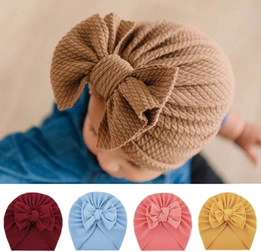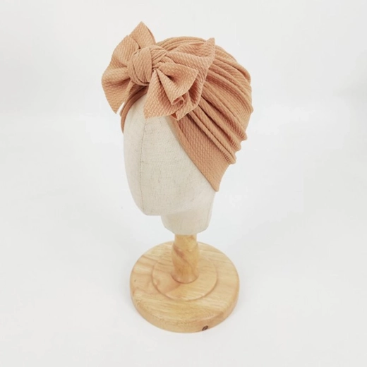 Turban pentru copii cu fundiță, pălăriuță pentru fete - maro